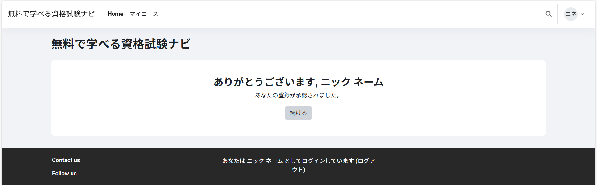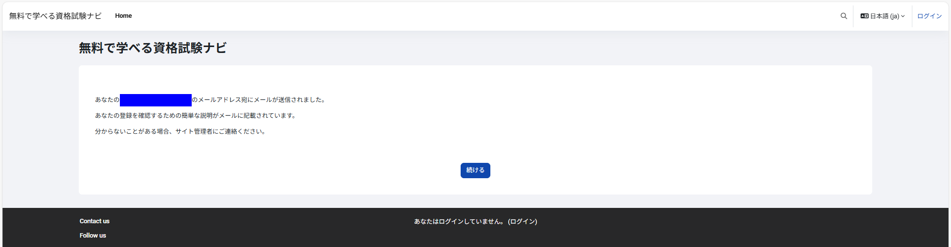 メールのリンクをクリックすると、下の図のように当サイトにアクセスされますので、「続ける」ボタンをクリックします。